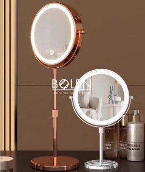 Kích thước tổng thể : 22cm x 40-50cm Kích thước gương : 20cm x 20cm Chất liệu : Inox Màu sắc : Vàng hồng | Bạc Đặc điểm : -Gương có 2 mặt : 1 mặt thường +...