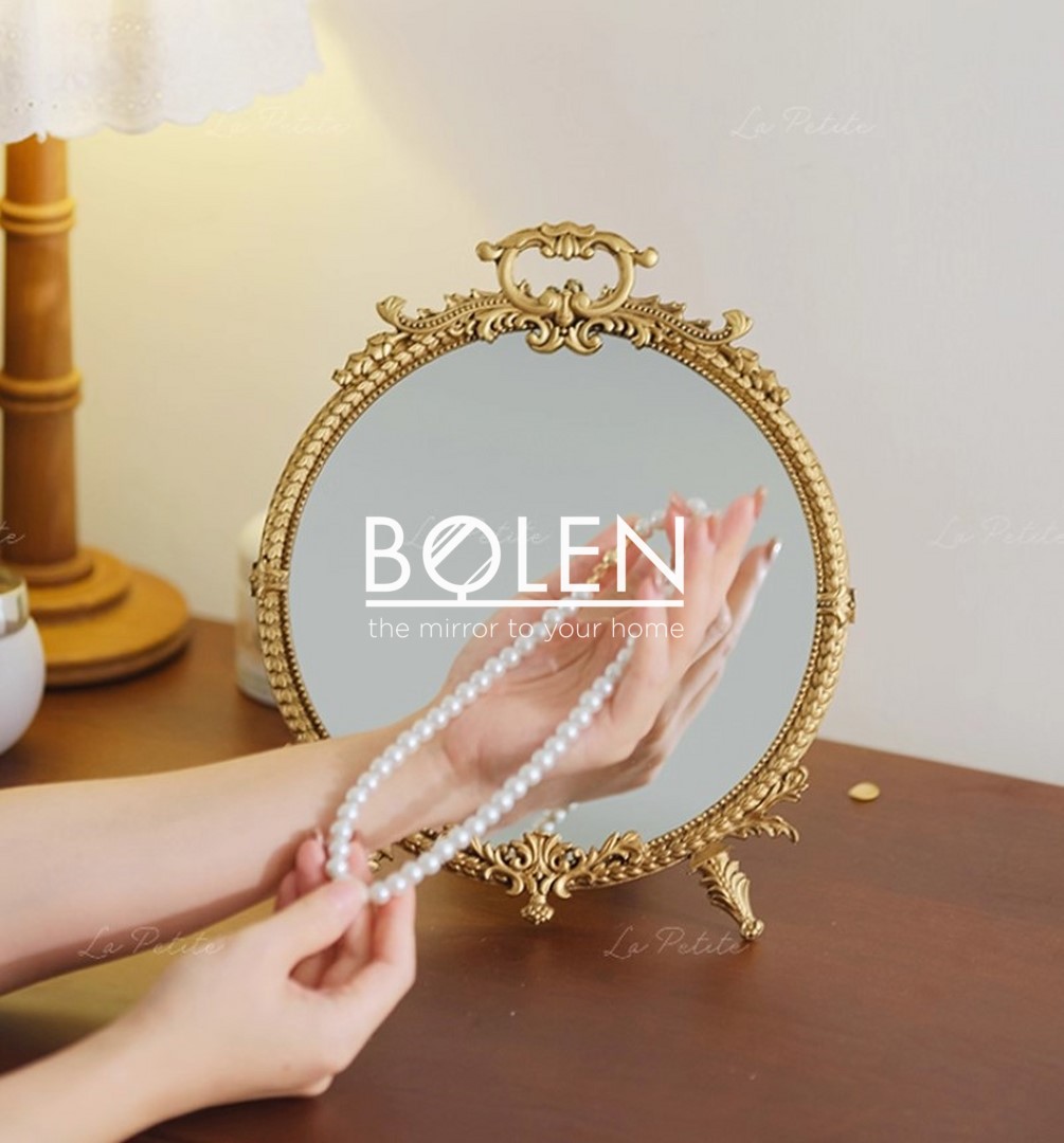 *GƯƠNG ĐỂ BÀN TRANG ĐIỂM DÁNG TRÒN VIỀN ĐỒNG CAO CẤP GTD262