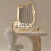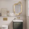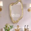 Gương có hình dáng đặc biệt tạo điểm nhấn cho căn phòng. Kết hợp với màu vàng sâm banh nhũ sang trọng.