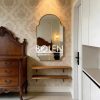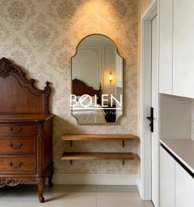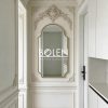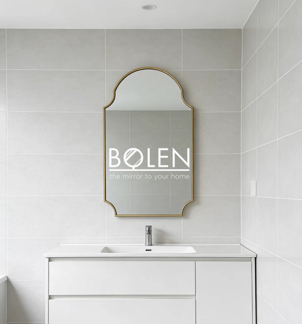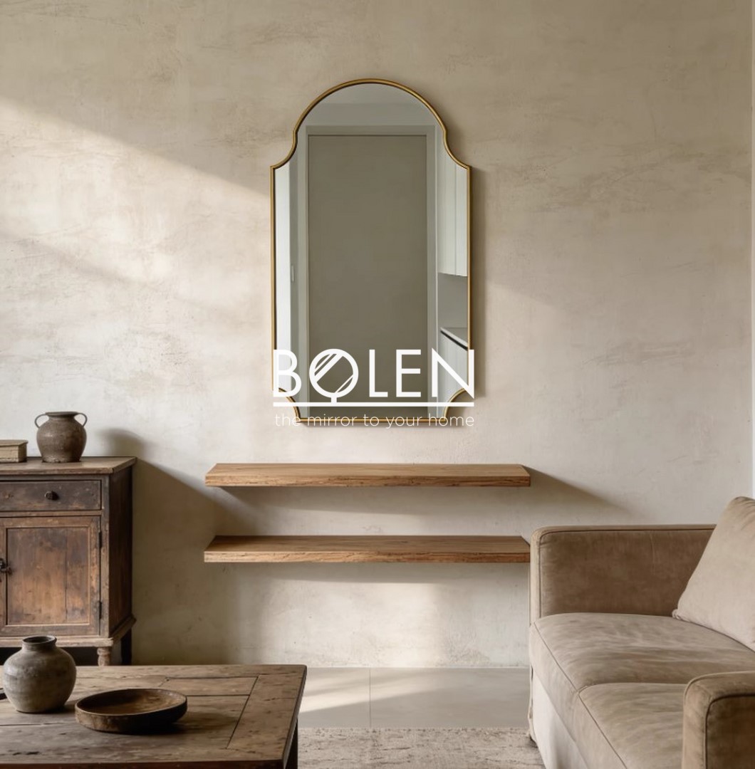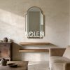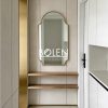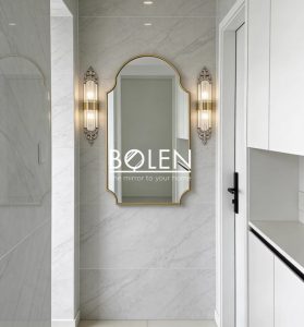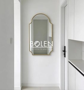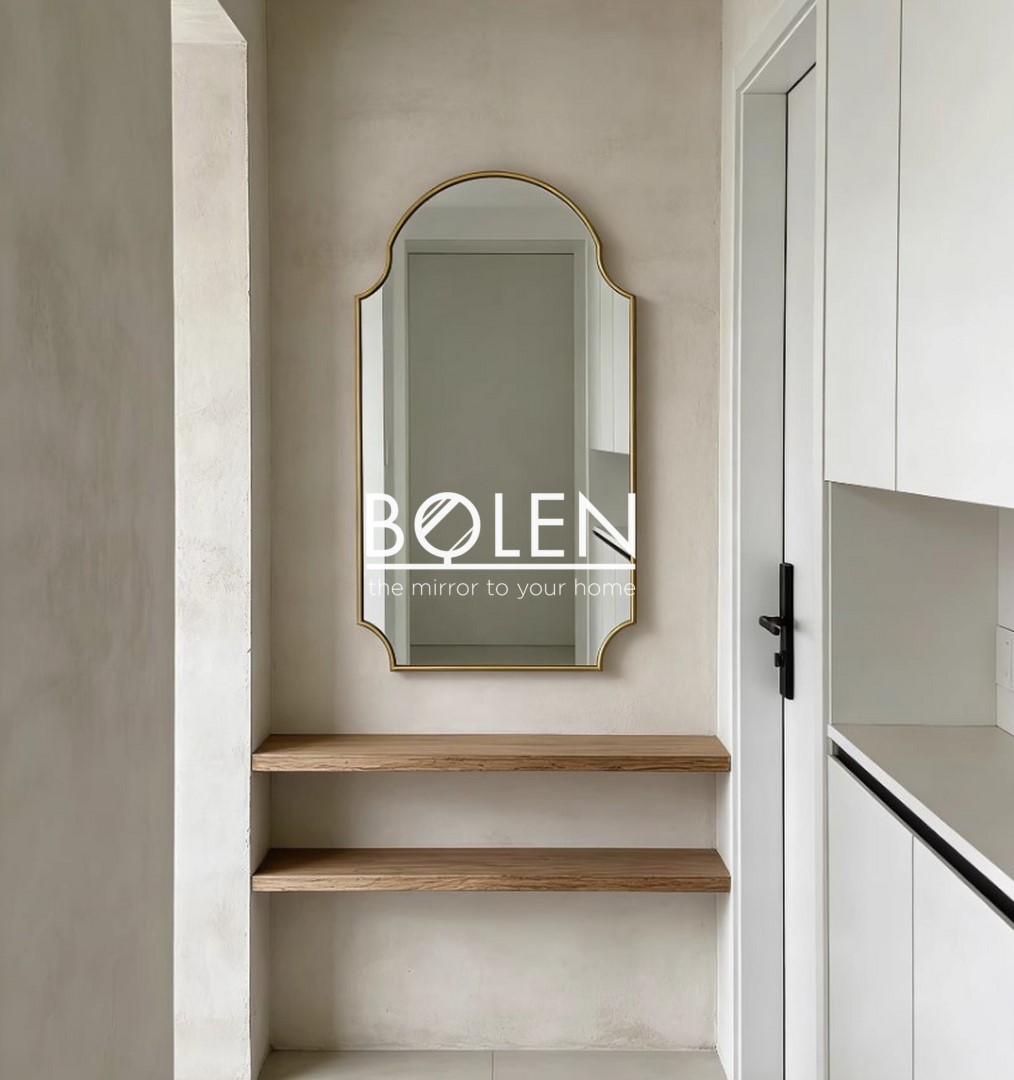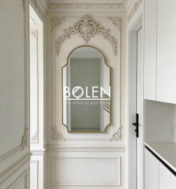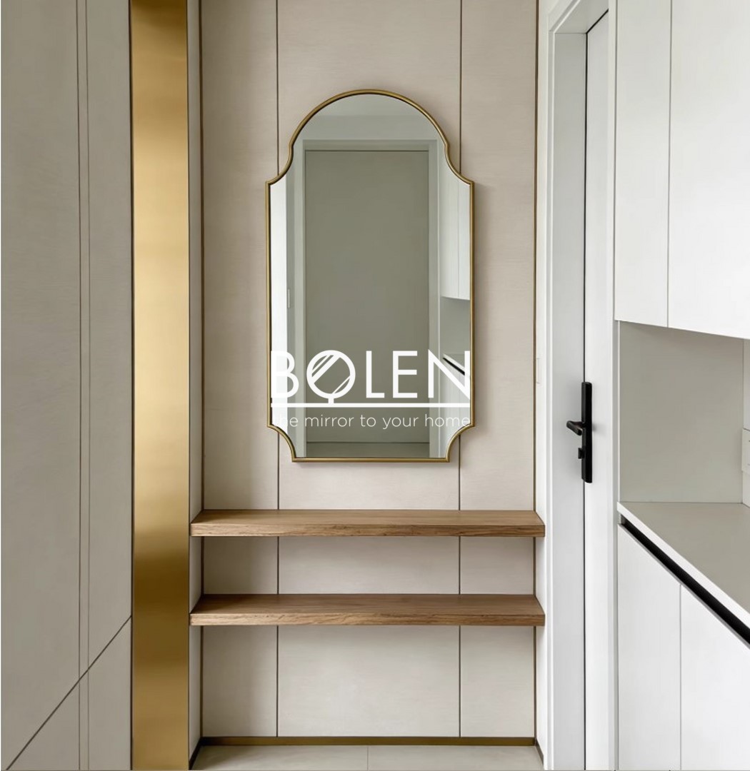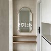 Gương trang trí decor viền inox thanh mảnh, mềm mại dáng vòm cách điệu mang lại điểm nhấn cho căn phòng.