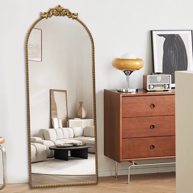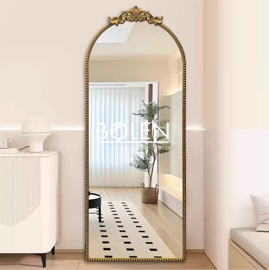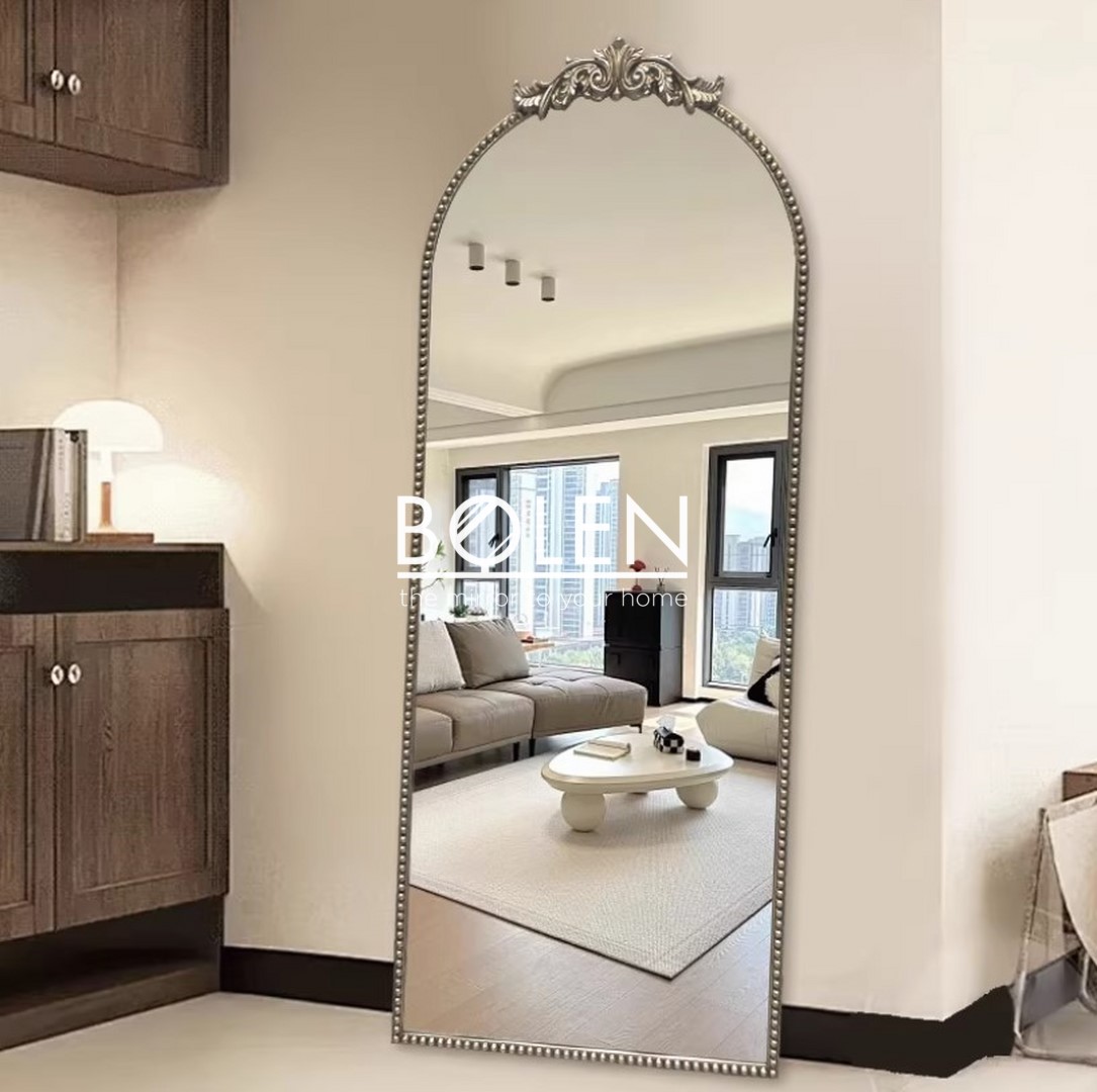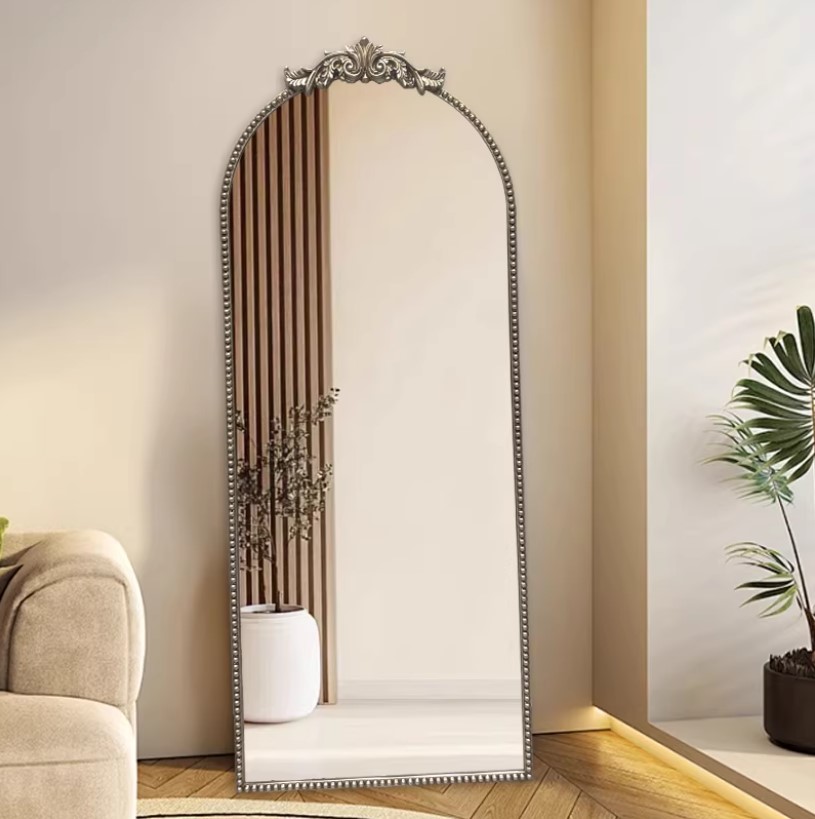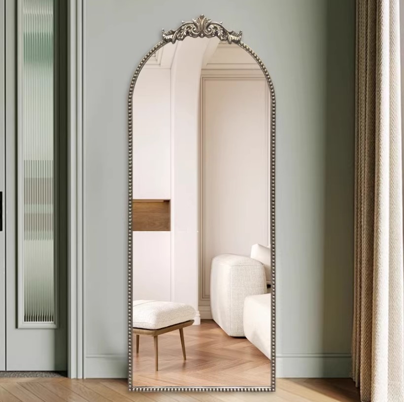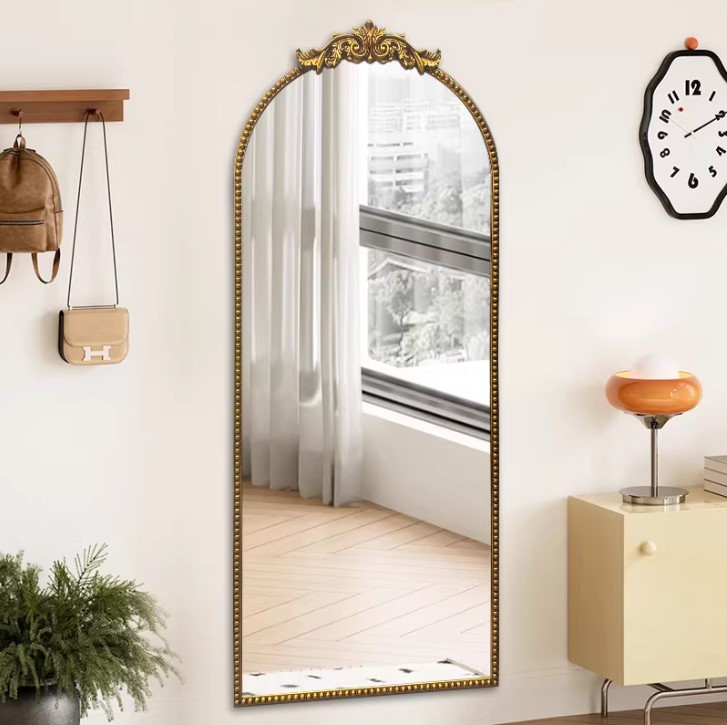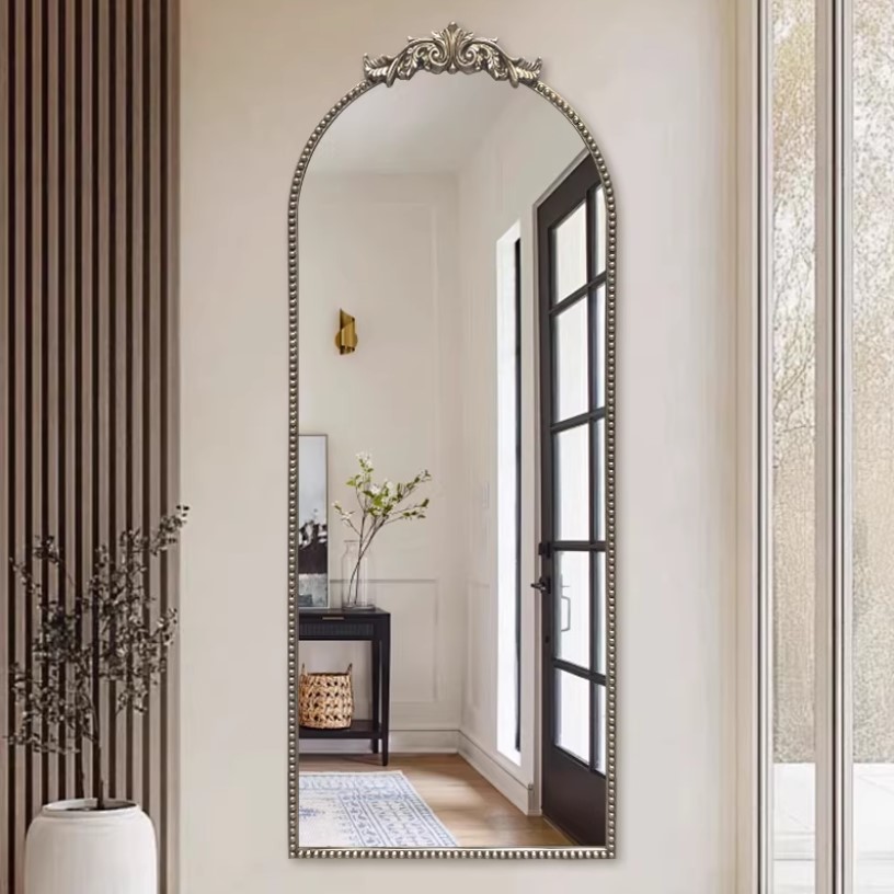Gương soi toàn thân tân cổ điển dáng vòm với điểm nhấn hoa văn ở phần vòm mang lại cảm giác mới lạ và không quá rườm rà.