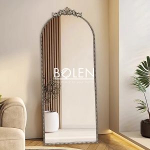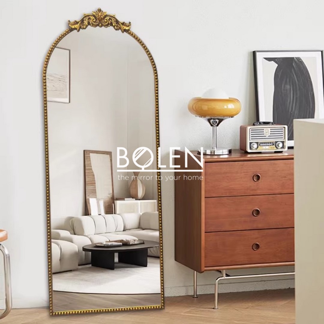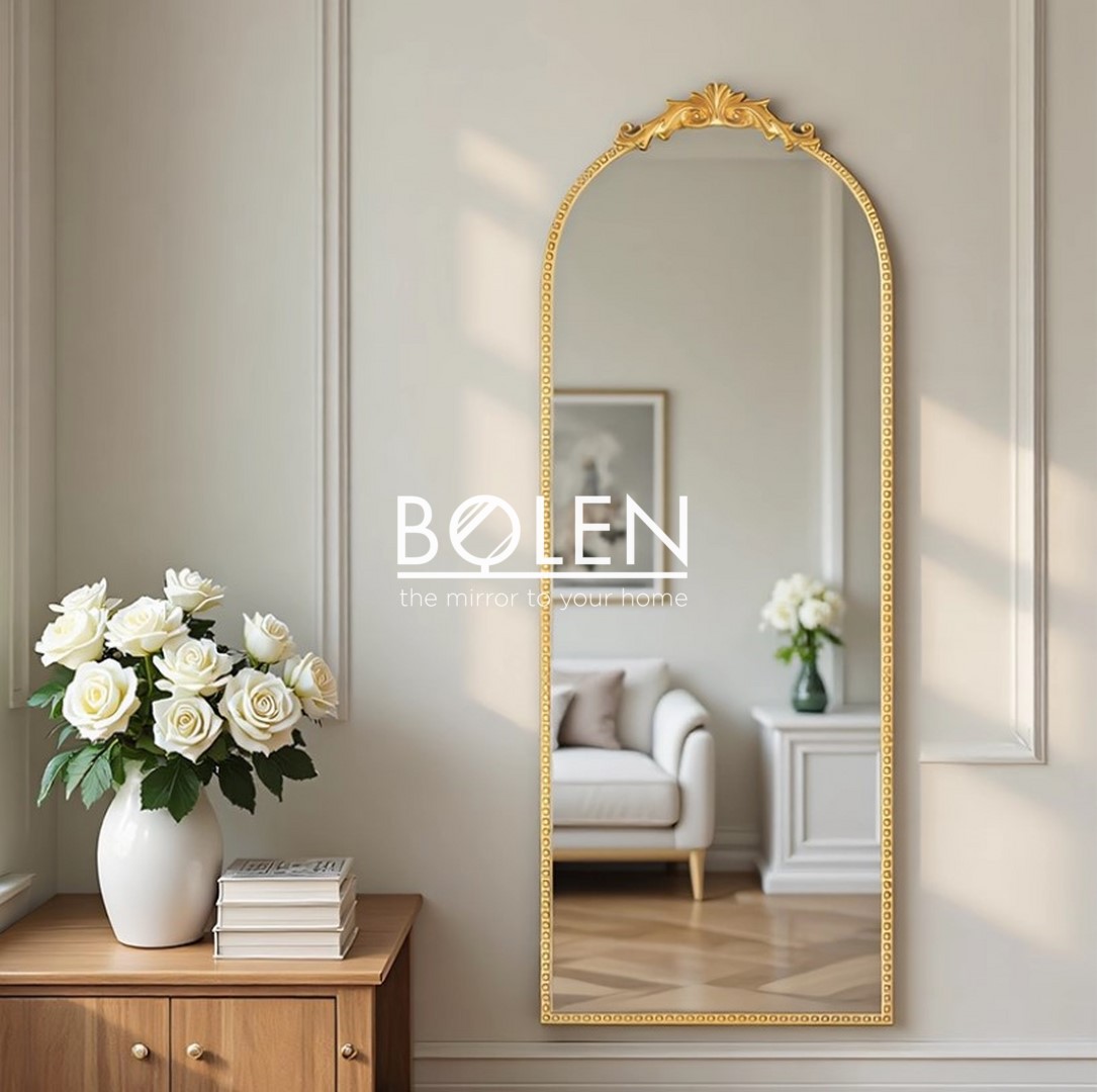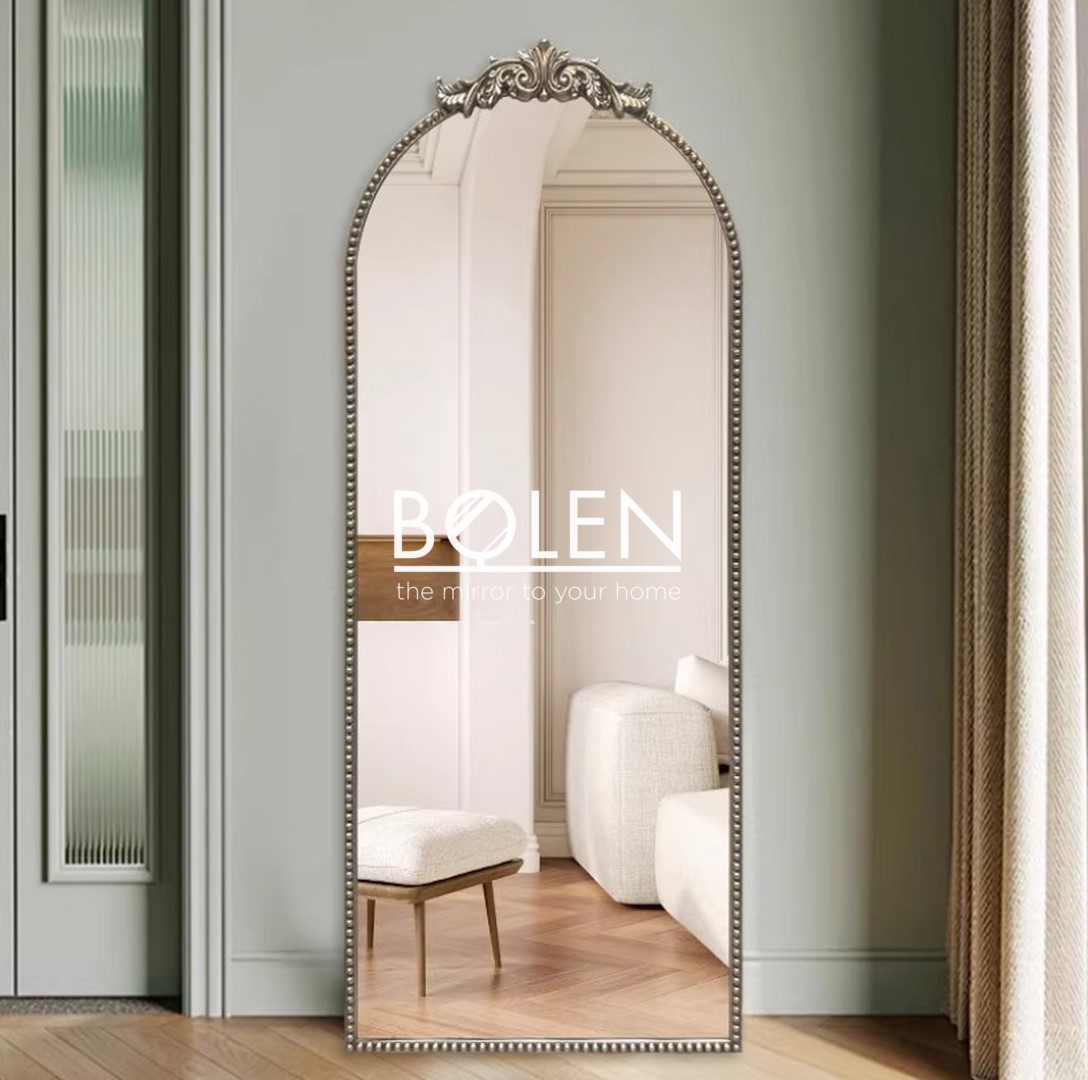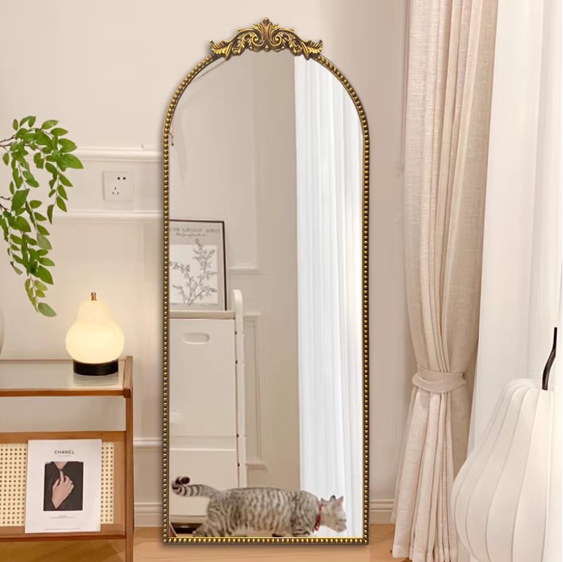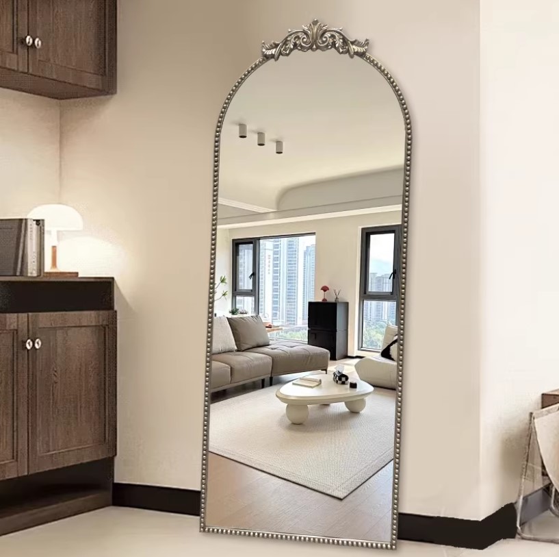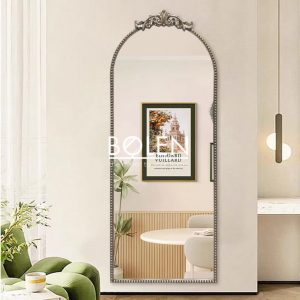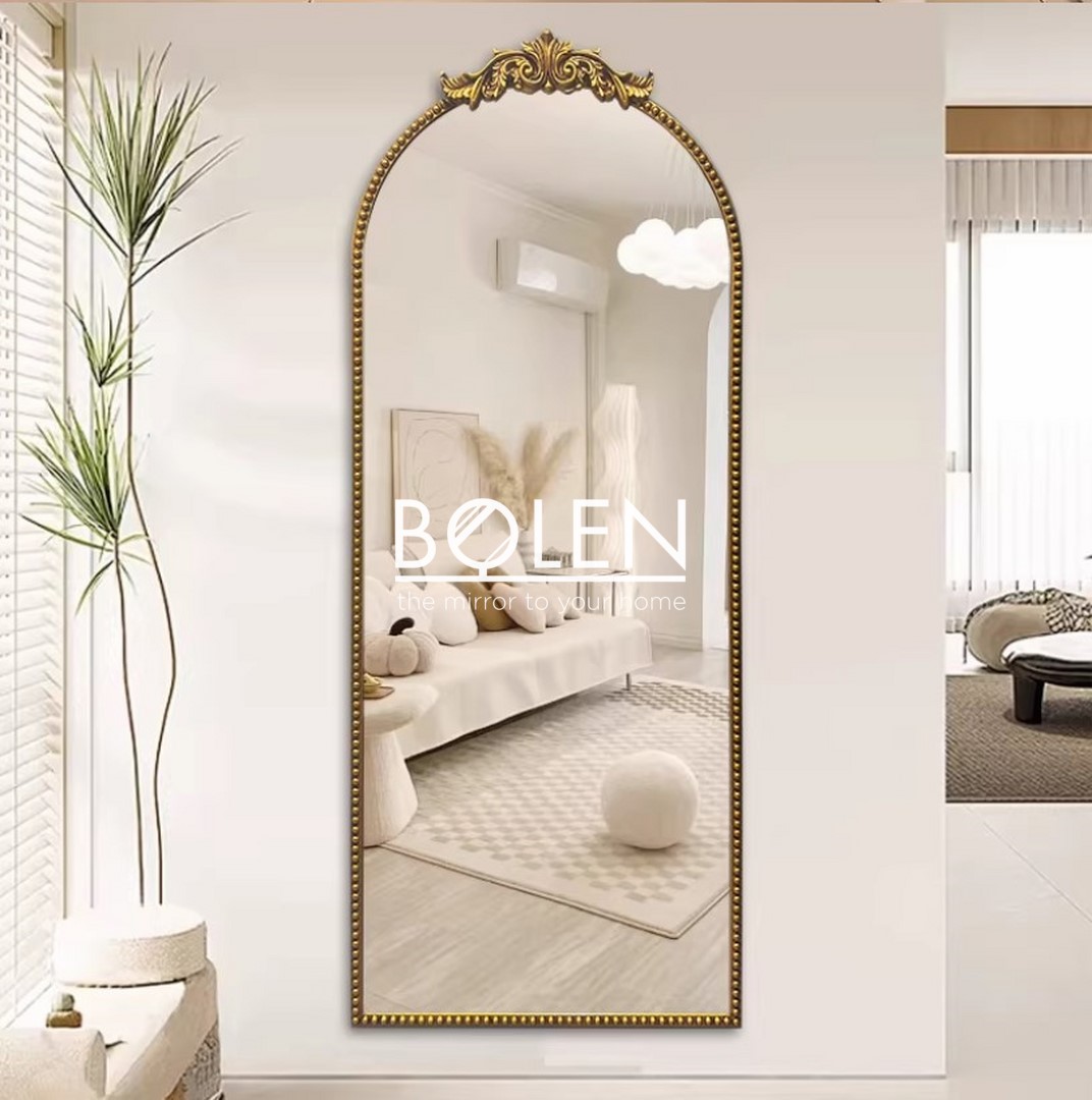 Gương soi toàn thân tân cổ điển dáng vòm với điểm nhấn hoa văn ở phần vòm mang lại cảm giác mới lạ và không quá rườm rà.