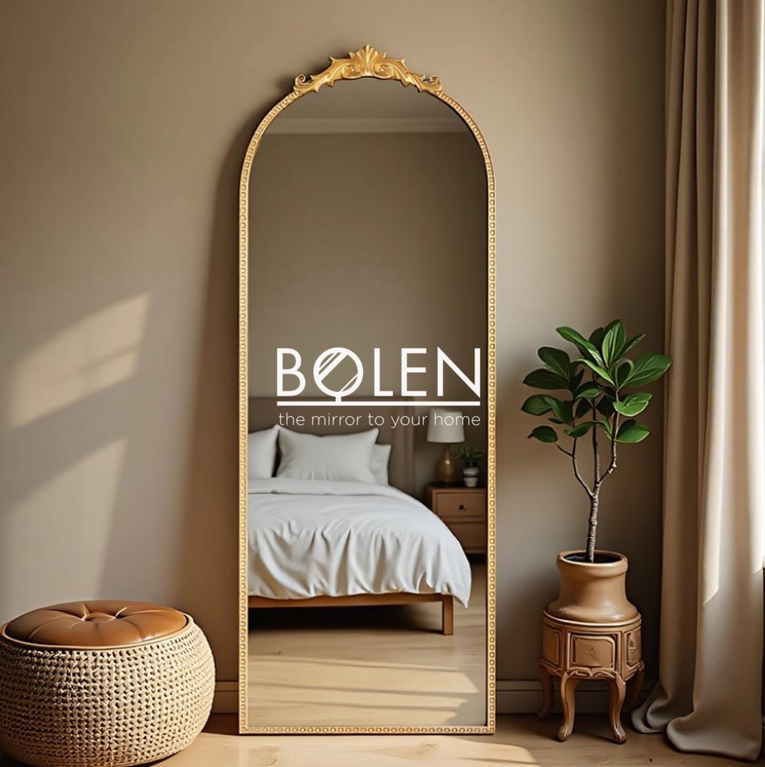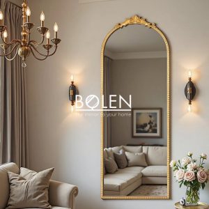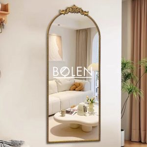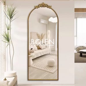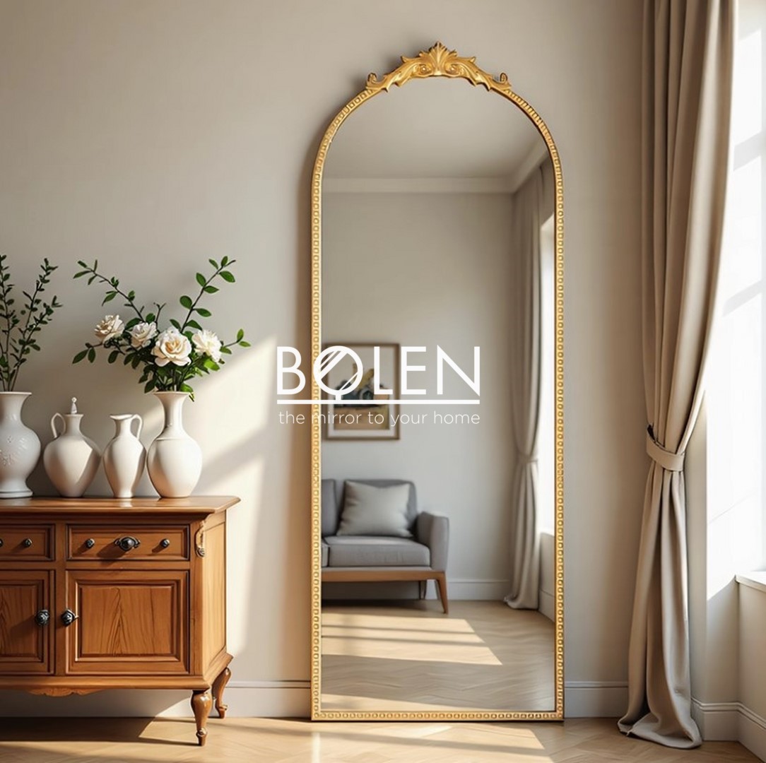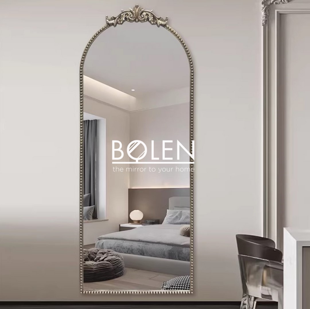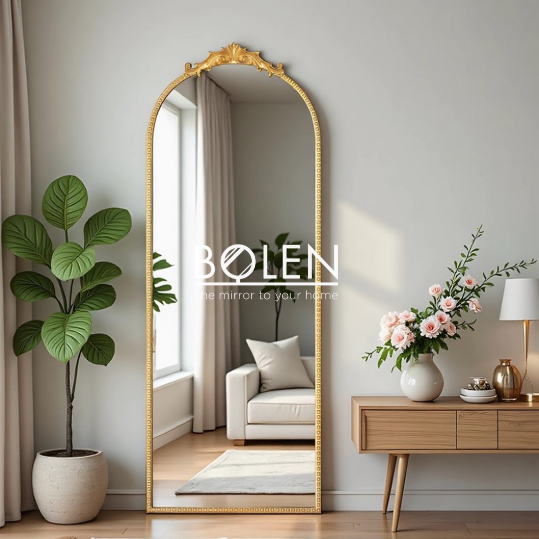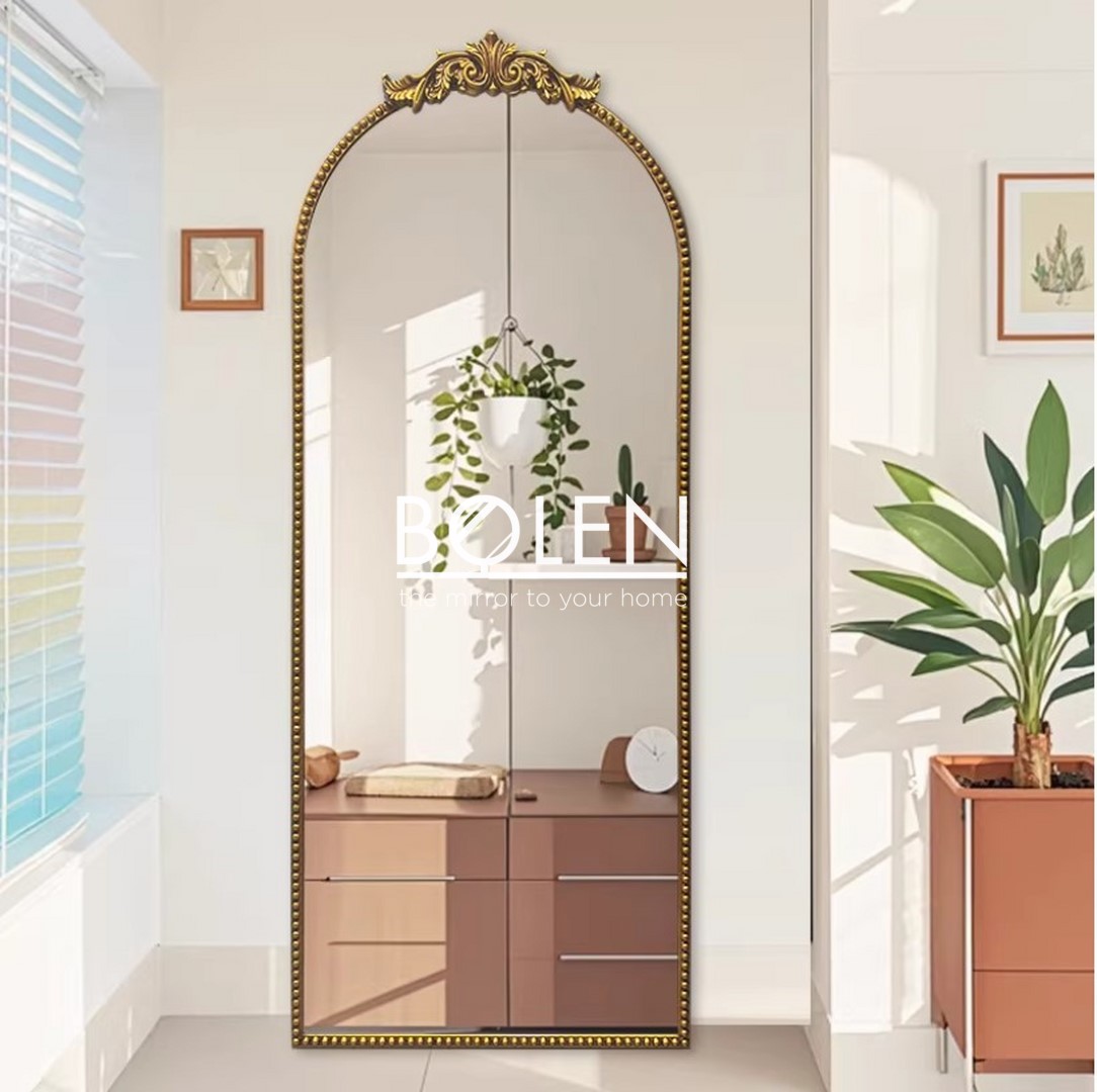 Gương soi toàn thân tân cổ điển dáng vòm với điểm nhấn hoa văn ở phần vòm mang lại cảm giác mới lạ và không quá rườm rà.