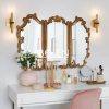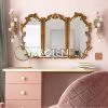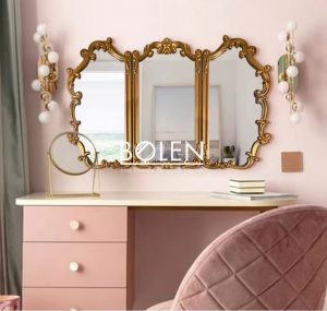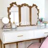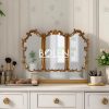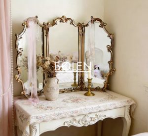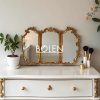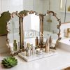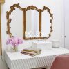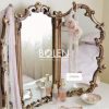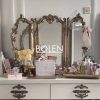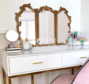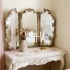 Gương trang điểm decor viền gỗ được chạm khắc tinh tế với thiết kế 3 cánh mang dáng vẻ thanh lịch kiểu Pháp.