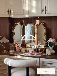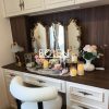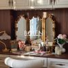 Gương trang điểm decor viền gỗ được chạm khắc tinh tế với thiết kế 3 cánh mang dáng vẻ thanh lịch kiểu Pháp.