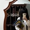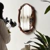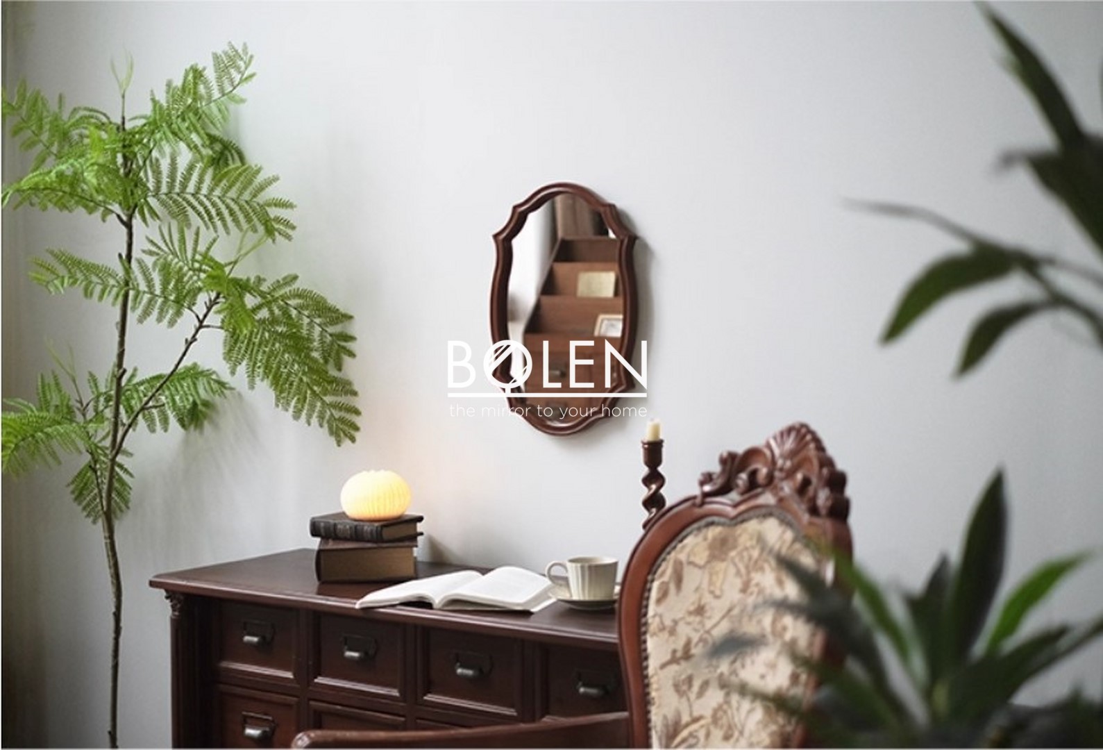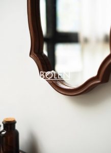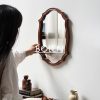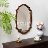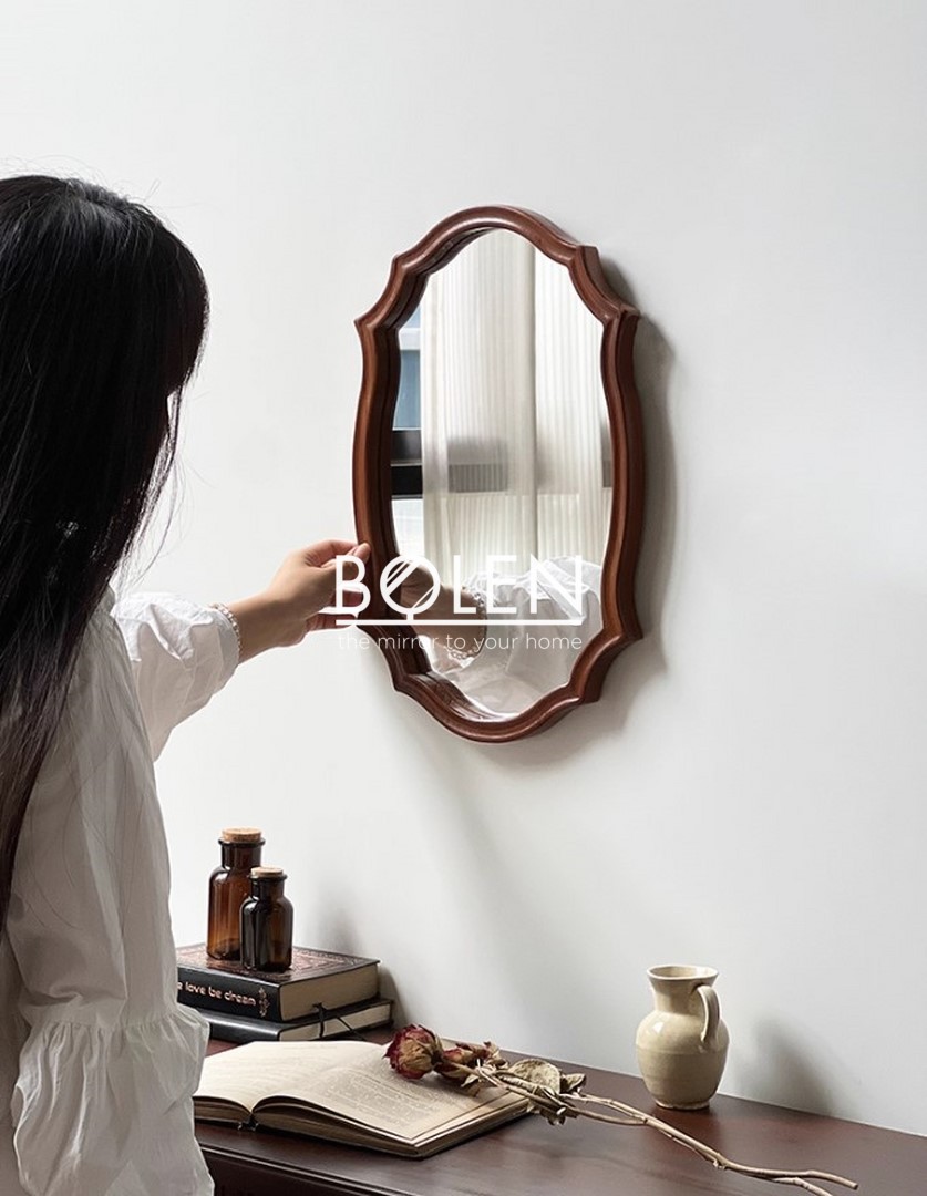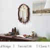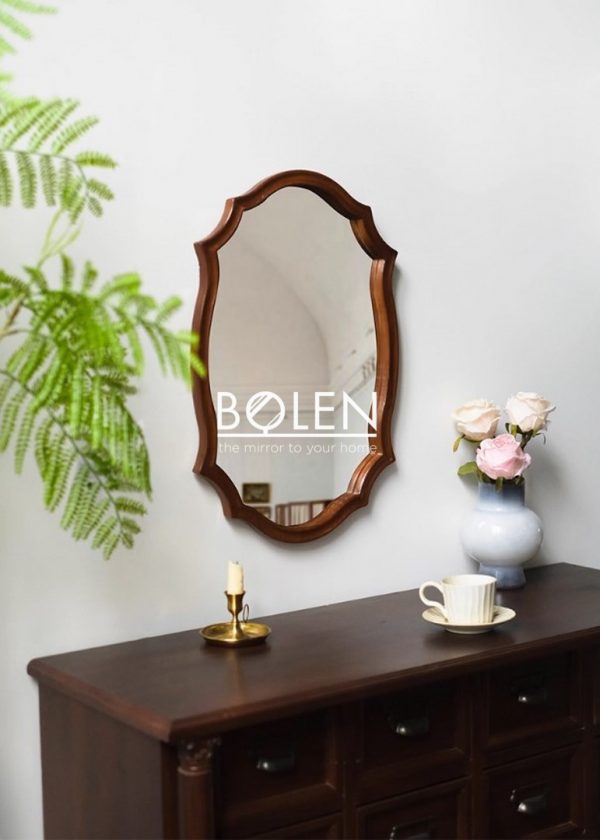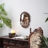 Gương trang điểm viền gỗ treo tường màu nâu sẫm với kích thước nhỏ nhắn vừa có thể decor vừa để soi bàn trang điểm.
